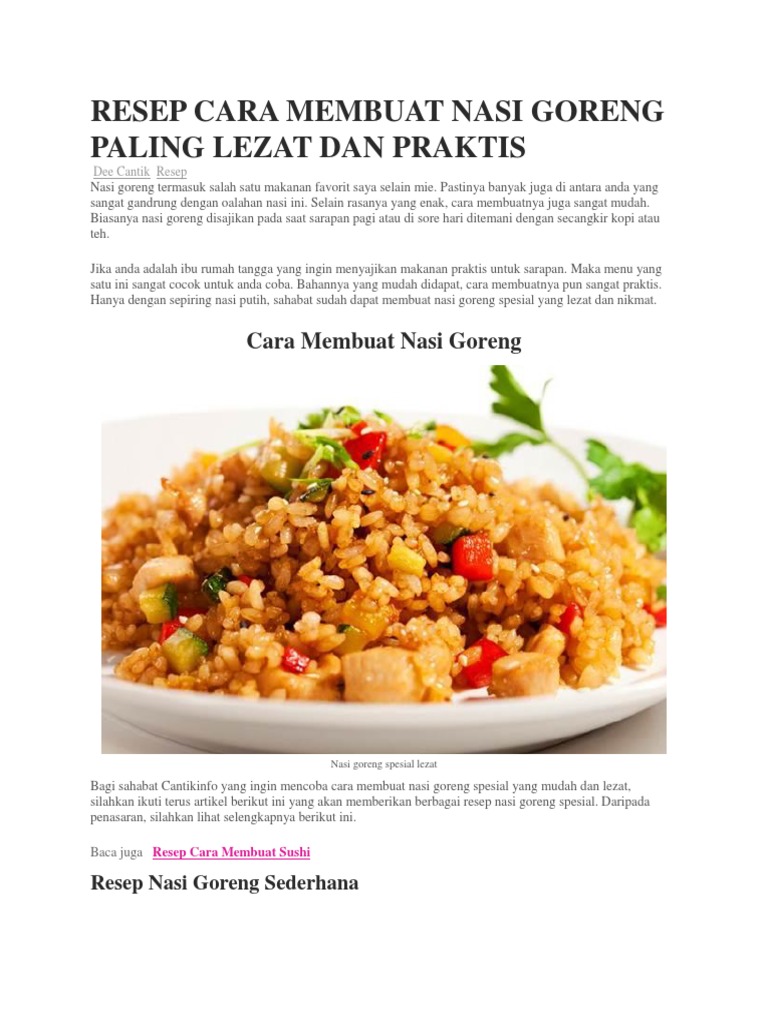 Resep Nasi Goreng Enak Dan Sederhana Info Resep