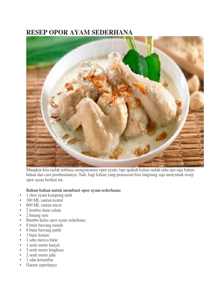 Resep Opor Ayam Bumbu Padang Surat Yasin Hx